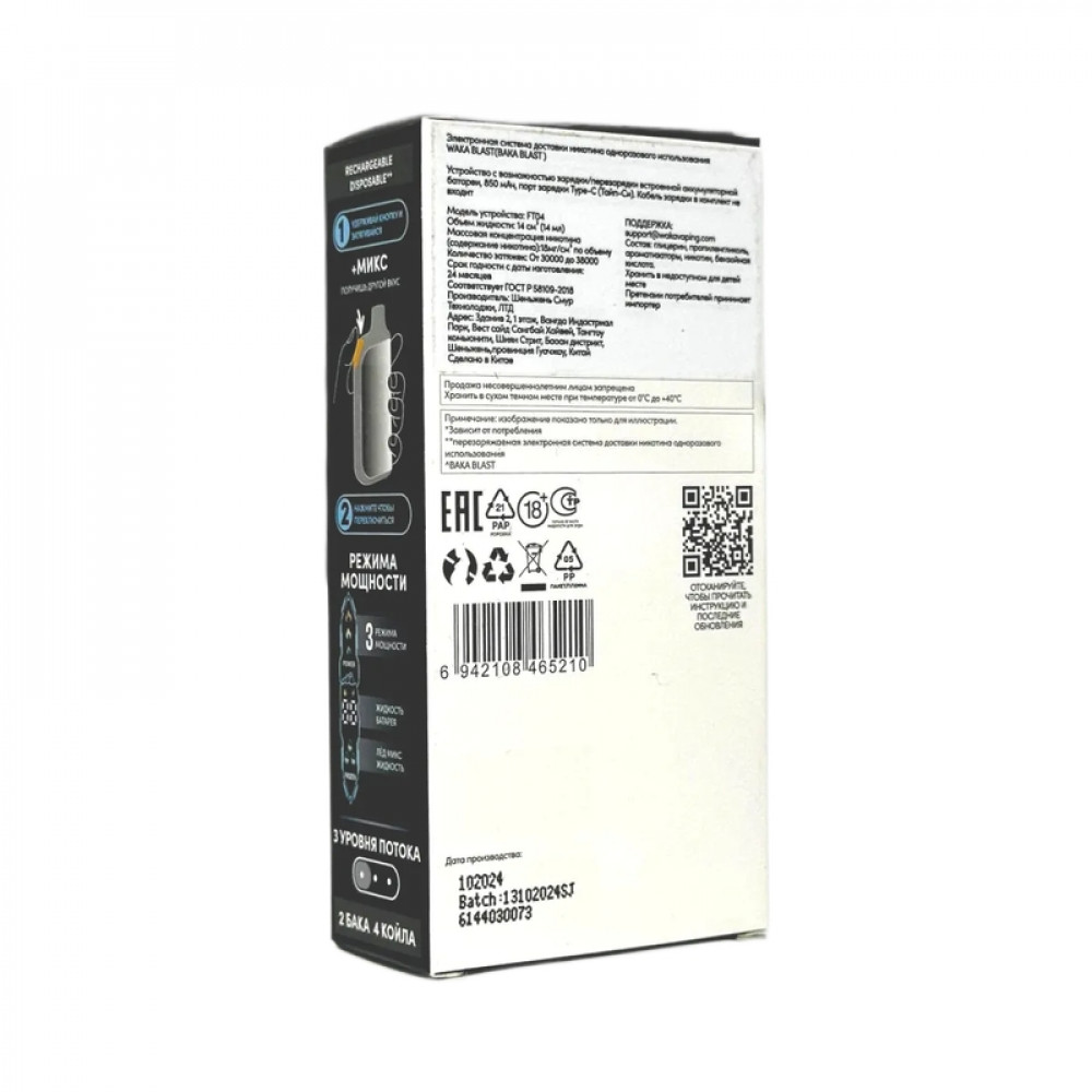 Технические характеристики WAKA BLAST 38000 Hard - Капучино + шоколад микс